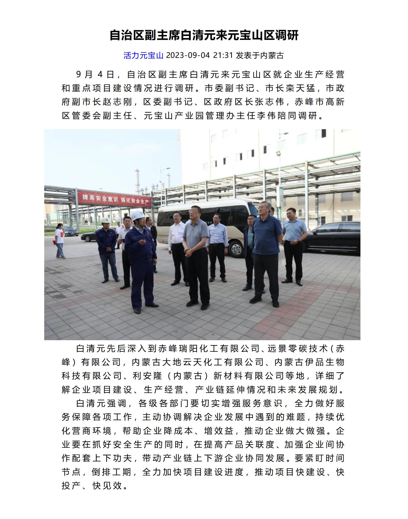 自治區(qū)副主席白清元來元寶山區(qū)調(diào)研